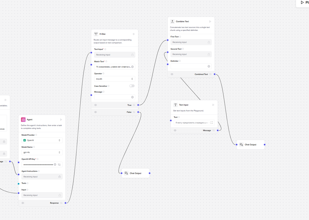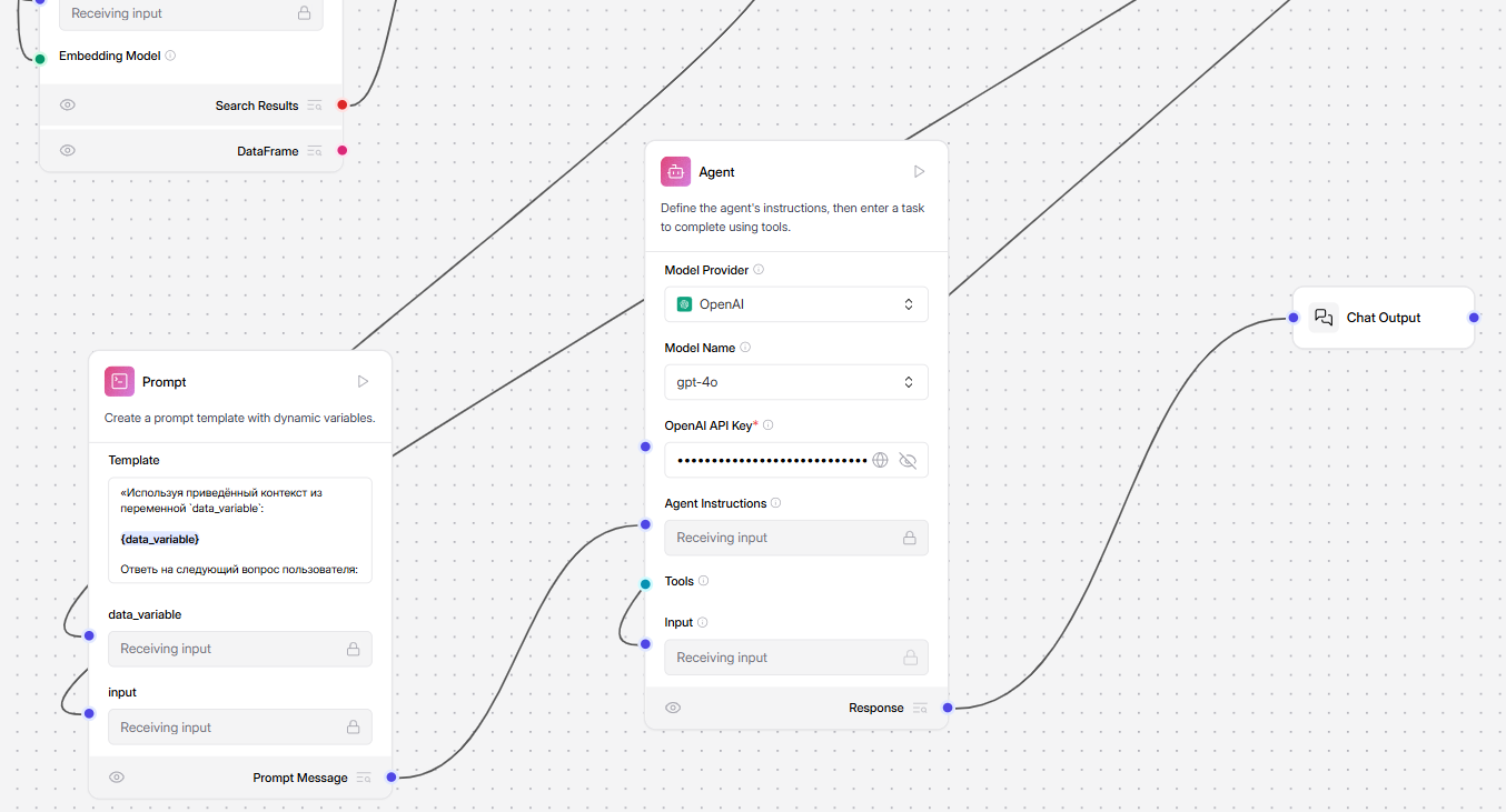 | Реализация в Langflow (условия ветки, правильные соединения) | 3 |