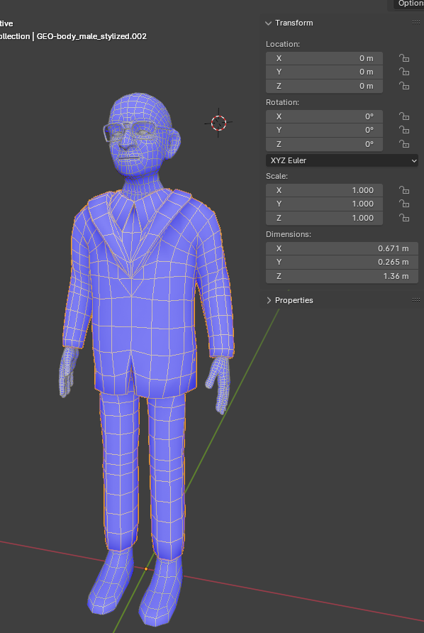 Далее следует адаптировать аватара для веба и добавить меш одежды. Суммарное количество треугольников у модели не должно превышать 20000.