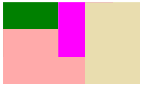 Напишите программу, которая должна определить, какую площадь занимает каждый цвет на экране в итоговой картинке. Координаты прямоугольников не превышают по модулю \(500\), число прямоугольников не более \(50\). Фоновый цвет не учитывается. В ответе указывайте только цвета с ненулевой площадью (какие-то прямоугольники могут оказаться полностью скрыты).