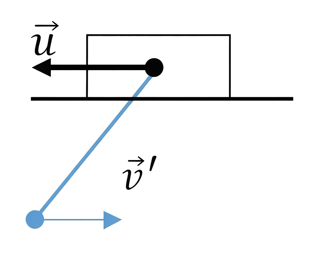 На рис. 1.1 \(\vec u\) — скорость бруска относительно земли, \(\vec{v^{\prime}}\) — скорость маятника относительно бруска.
