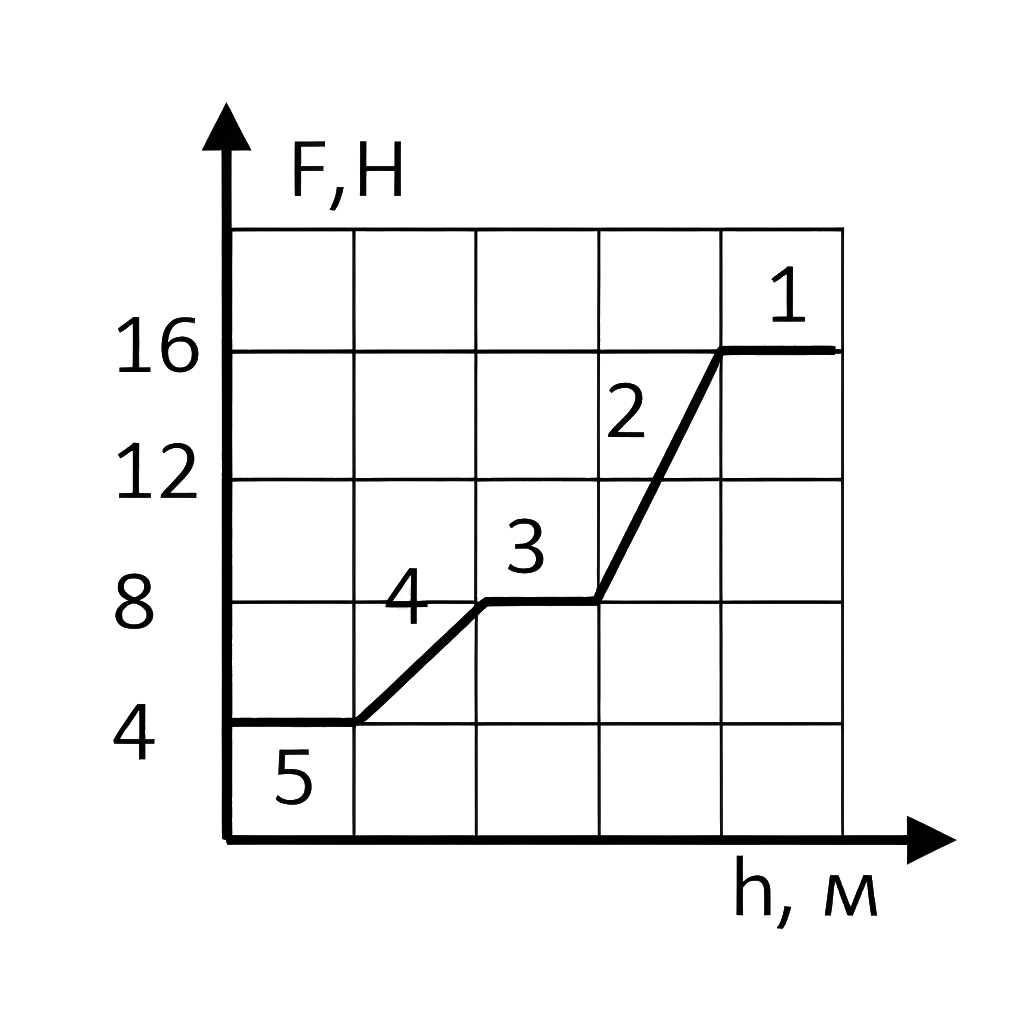 На участке 5 сила \(F = 4\) H равна сумме \(P_{_1}\) и \(P_{_2}\) за вычетом силы Архимеда \(F_{A1}\) и \(F_{A2}\), действующих на нижний и верхний груз: \[\label{yg8-030203} 4=P_1+P_2-F_{A1}-F_{A2}.\]
