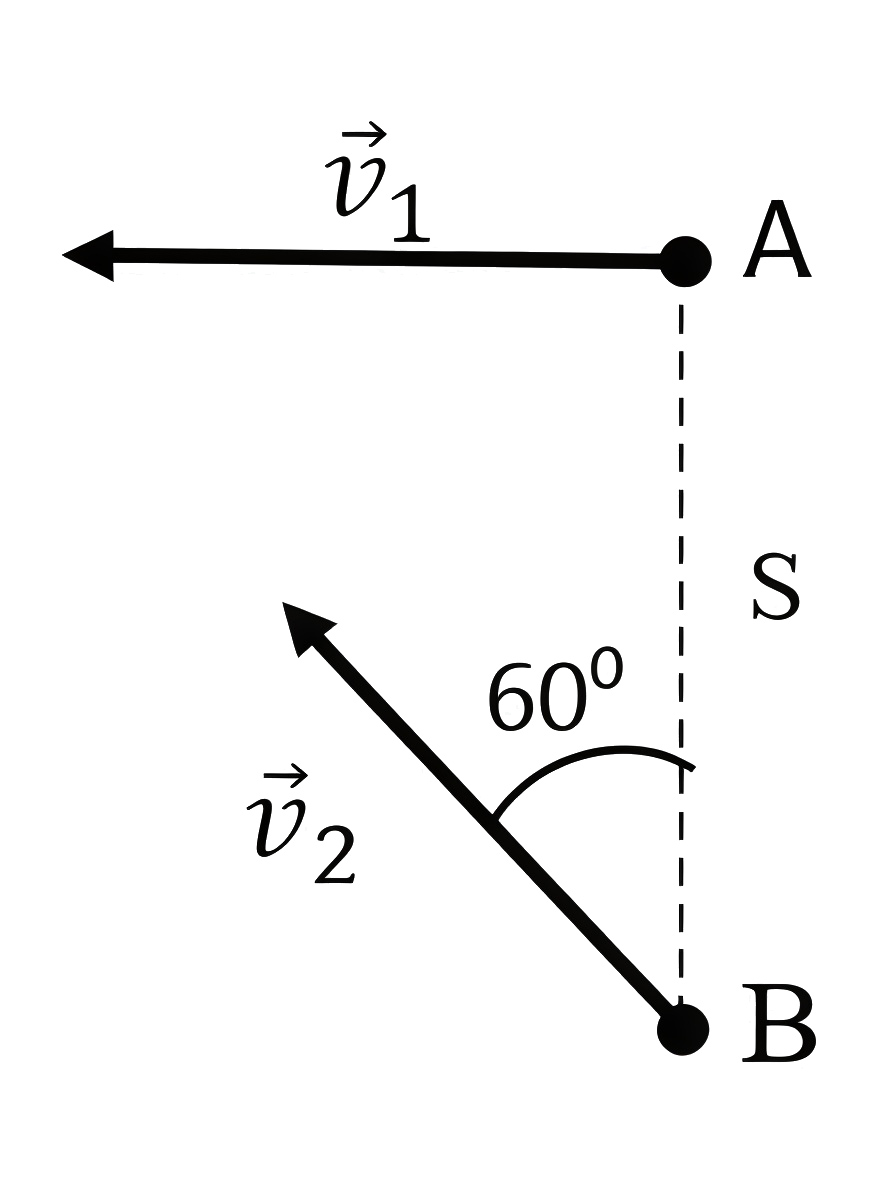 В какой момент времени расстояние между ними будет минимальным и чему оно будет равно, если их начальное взаимное расположение показано на рис. 1.6? В начальный момент времени расстояние между ними \(S\).