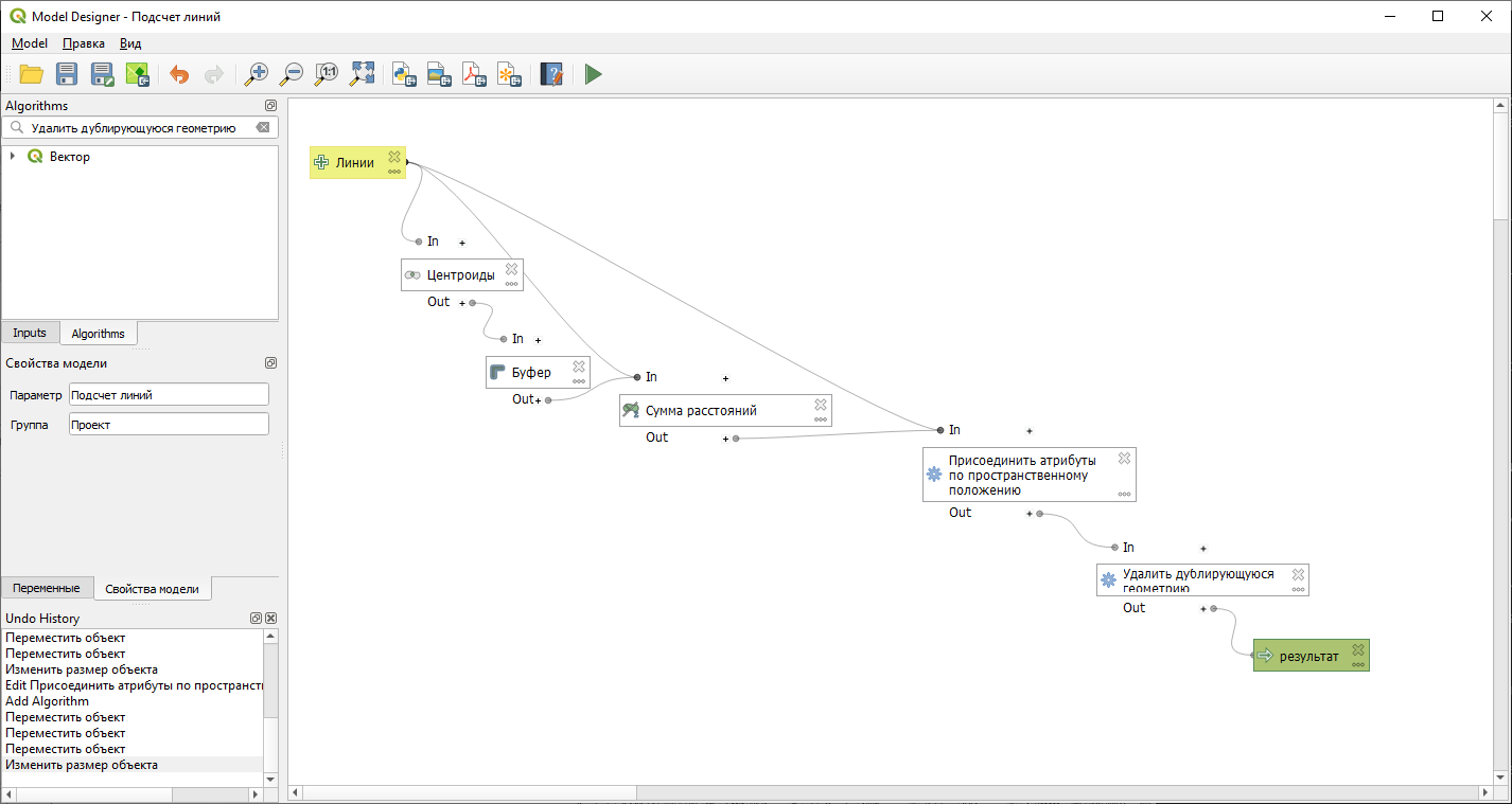 Рис. 1.13.Затем удалим дублирующие линии. Для этого используем алгоритм «Удалить дублирующуюся геометрию» — рис. 1.14.