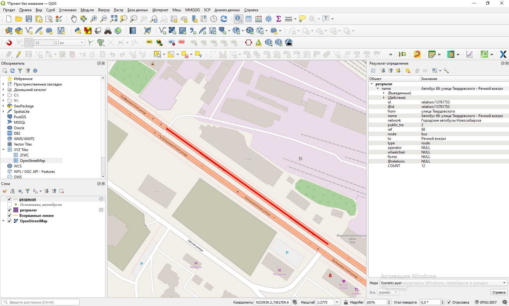 По открытым данным OpenStreetMap (https://www.openstreetmap.org/, https://wiki.openstreetmap.org/wiki/Map_features) и ППК «Фонд развития территорий» (https://витрина.фрт.рф/myhouse) рассчитать в геоинформационной системе QGIS плотность маршрутов общественного транспорта на территории города Новосибирска.