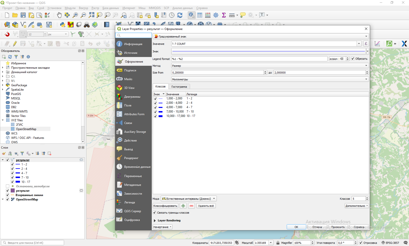 Рис. 1.17.Установим стиль отображения маршрутов городского транспорта в зависимости от их количества — рис. 1.18.
