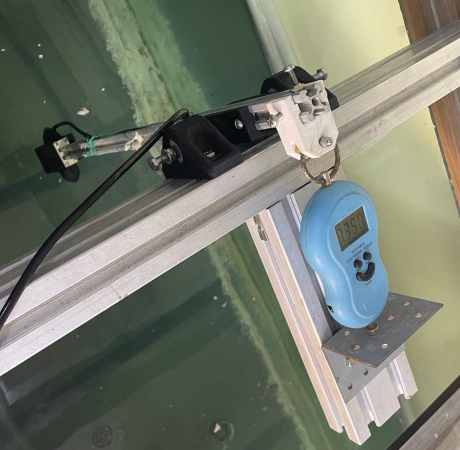 Рассчитайте тягу движителя по показаниям лабораторного стенда. Определите, хватит ли тяги такого движителя, установленного на аппарат с нулевой плавучестью, чтобы поднять куб со стороной 10 см и весом 15 Н. В ответе укажите сумму выталкивающих сил.