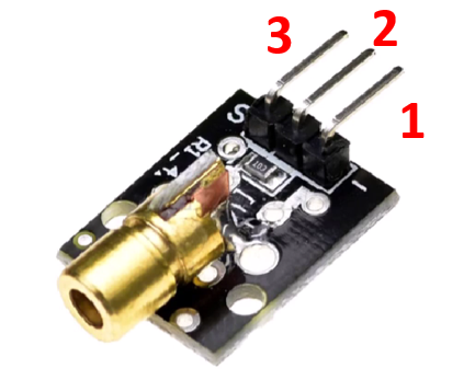 Подключите выводы 1, 2, 3 лазерного модуля к плате, выбрав правильные варианты. Ответом является последовательность из трех цифр.