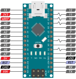 Иван хочет разработать герметичный дальномер, который может определять размеры повреждений. Для этого он решил использовать лазерный модуль KY-008 (рис. 1.5), фоторезистор и плату Arduino Nano (рис. 1.6).