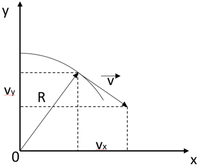 Вектор скорости точки в любой момент времени направлен по касательной к траектории движения. Отобразим этот вектор и спроецируем на заданные оси.