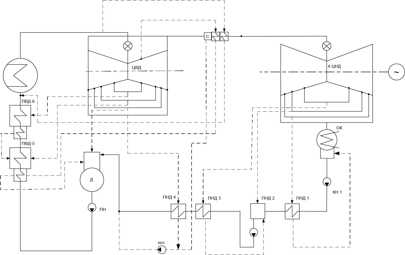 Принятая схема предназначена для регенеративного подогрева основного конденсата (ОК) и питательной воды в режимах нормальной эксплуатации.