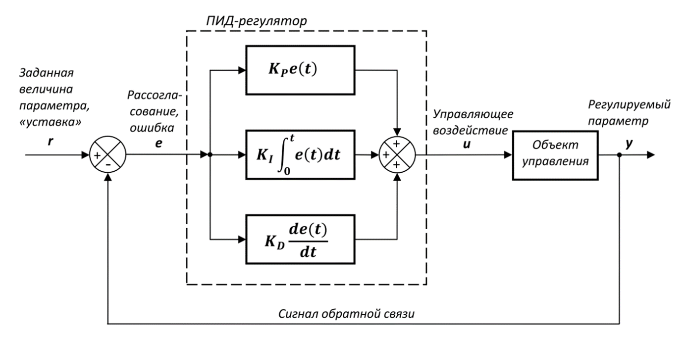ПИД-регулятором называется устройство, применяемое в контурах управления, оснащенных звеном обратной связи (рис. 1.5).