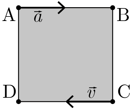 Квадратная плита ABCD со стороной \(a = 40\textrm{\,см}\) шарнирно закреплена в одной точке и вращается вокруг оси, перпендикулярной ее плоскости с постоянной угловой скоростью. При этом в некоторый момент времени скорость вершины C этой плиты направлена строго на вершину D, а ускорение вершины A — строго на вершину B (см. рис. 6.2). На каком расстоянии от центра пластины находится шарнир?